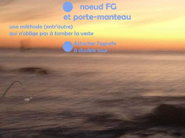 j'utilise toujours lorsque je prépare mes cannes à terre le même système pour faire le noeud FG et le noeud d'agrafe. Voici le principe en images détaillées