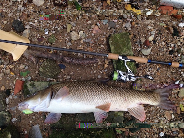 J'ignorais que des barbeaux se tenaient là, je péchais au Megabass Griffon en bottom tapping assez lent en cherchant les perches quand j'ai pris un bon stop bien suspect. C'est quand c'est parti que j'ai compris que c'était un client, pas une perche, même grosse... les rush étaient puissants, j'ai pensé à un gros sandre, mais assez longs, du coup plus un sandre... puis j'ai pensé à un petit silure, mais il n'y avait pas de coups de tête, juste des rushs puissants et bien droits, en utilisant les courants... c'est en le voyant que ma surprise s'est manifestée