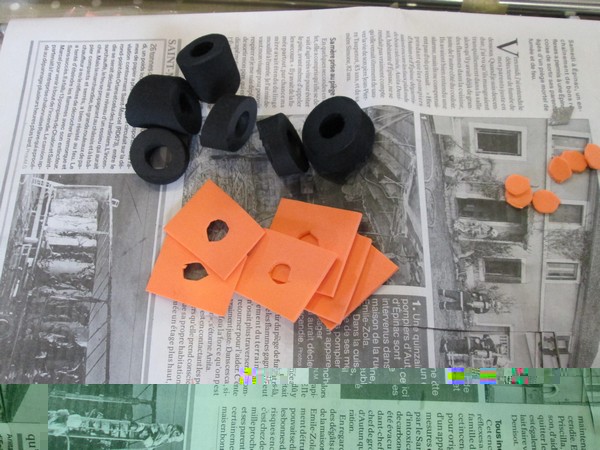 C'est la merde: j'ai essayé d'intercaler du foam orange façon portna'wak sur les morceaux d'EVA de ma commande, en collant tout ça à l'epoxy. Grossière erreur, la colle est trop raide une fois sèche et fait un point dur à la jonction des deux mousses. :(