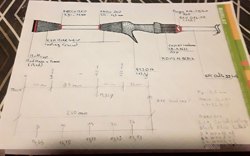Pour se qui est du porte moulinet ecs je voudrai le placer à 24 cm du butt comme indiqué sur la photo , et si l'on regarde les dimension du blank à 25 il est annoncé 13,25 donc légèrement plus grand à 24cm or il n'existe pas la taille 13.5 j'ai soie la taille 12,5 qu'il faudrait réarmer mais ce n'est peut être pas possible soie la taille 14 ou la j'ai peur que le porte moulinet flotte et qu'il y est une gêne au niveau de la prise en main doigt en contact avec le blank faut t'il que la aussi je parte sur une autre référence de porte moulinet ou partir sur la taille 14 ?