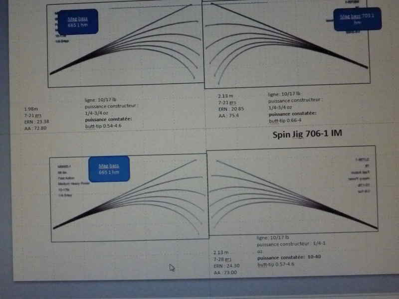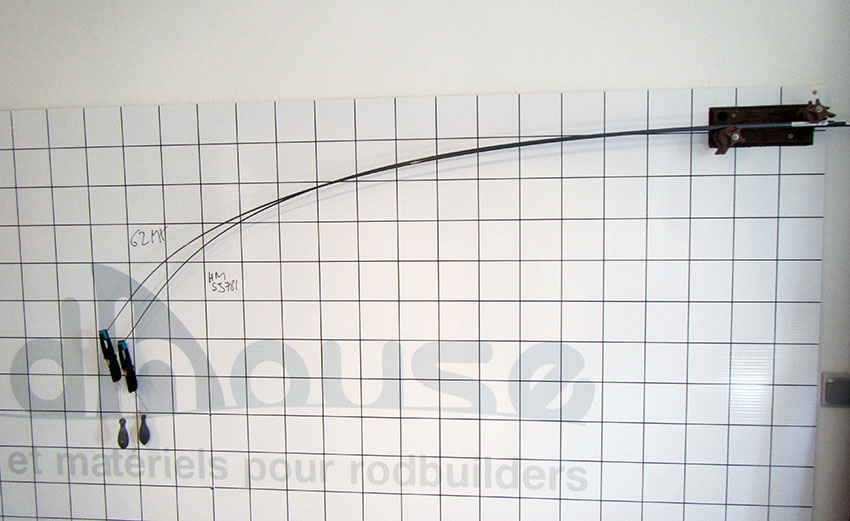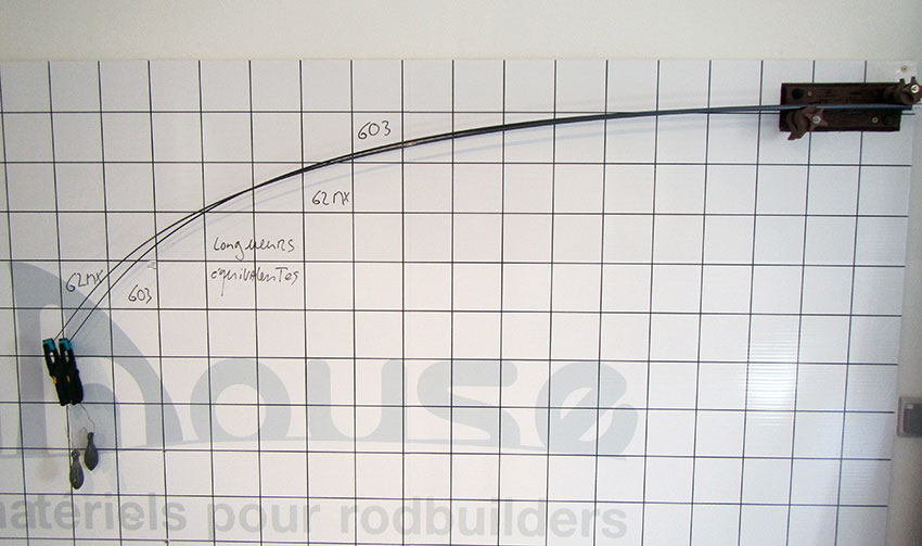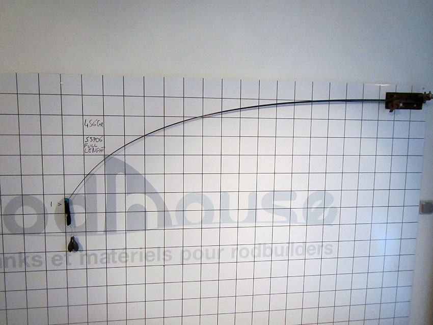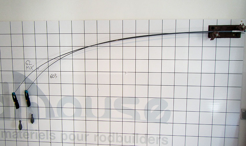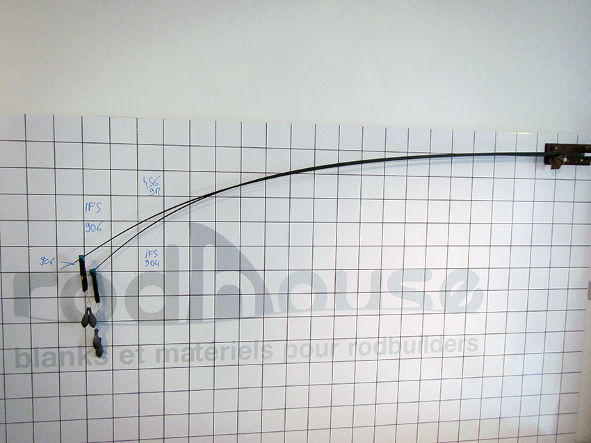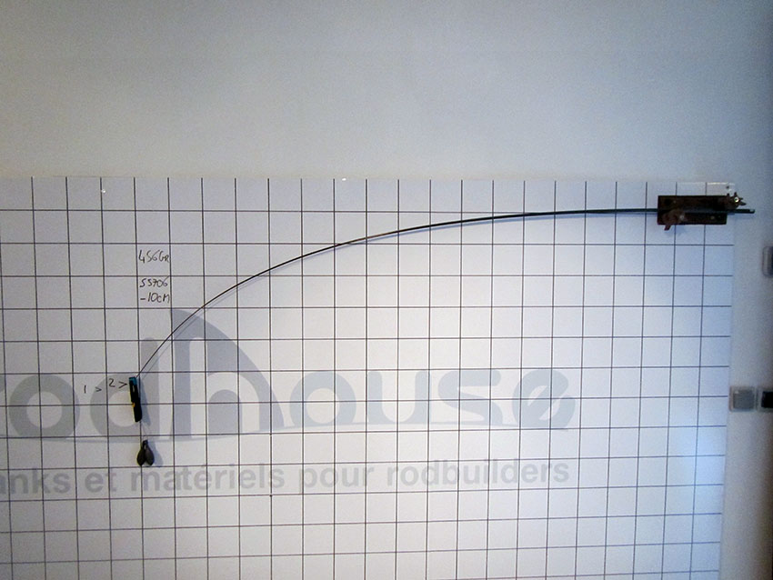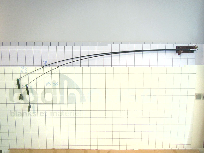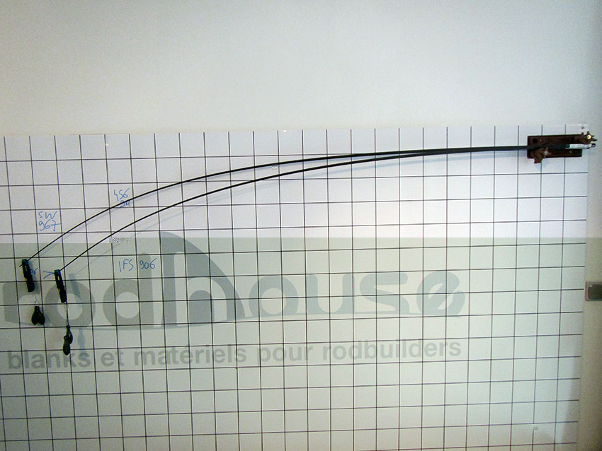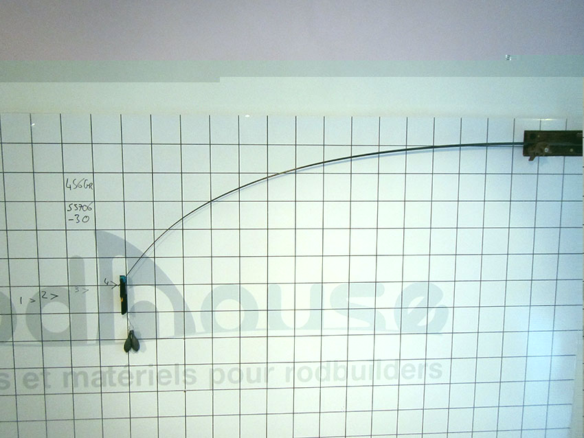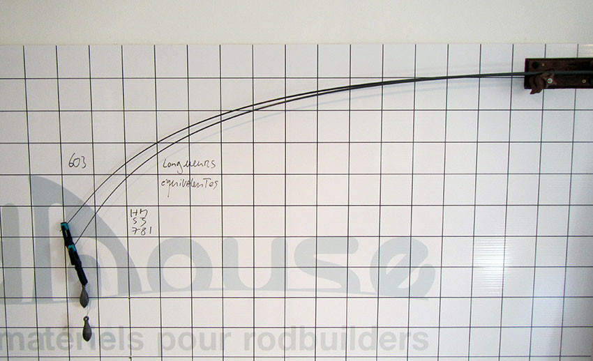 un même blank (NF SJ 706 IM) soumis à un poids de 456 grs, longueur totale, -10 cm, -20 cm, -30 cm