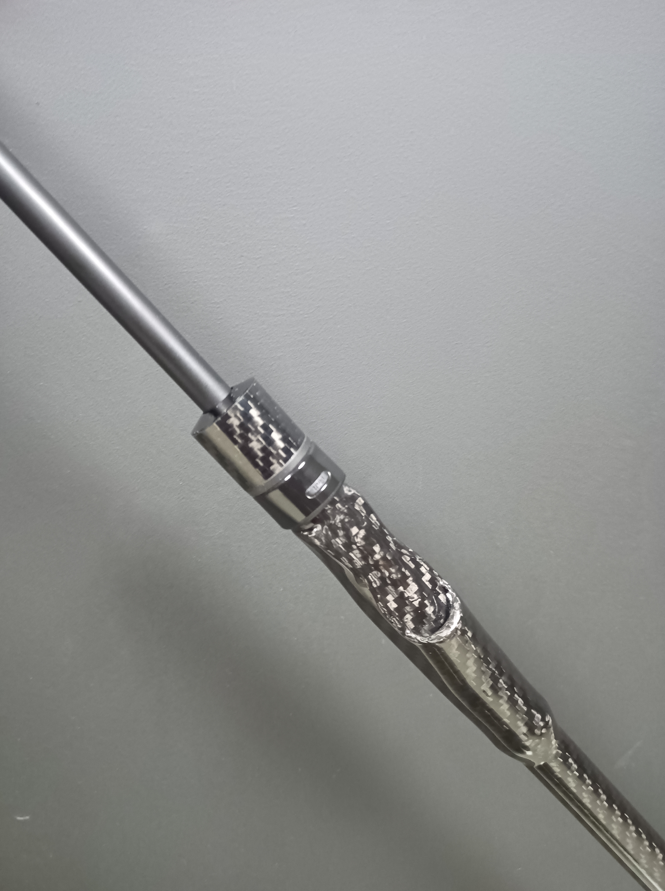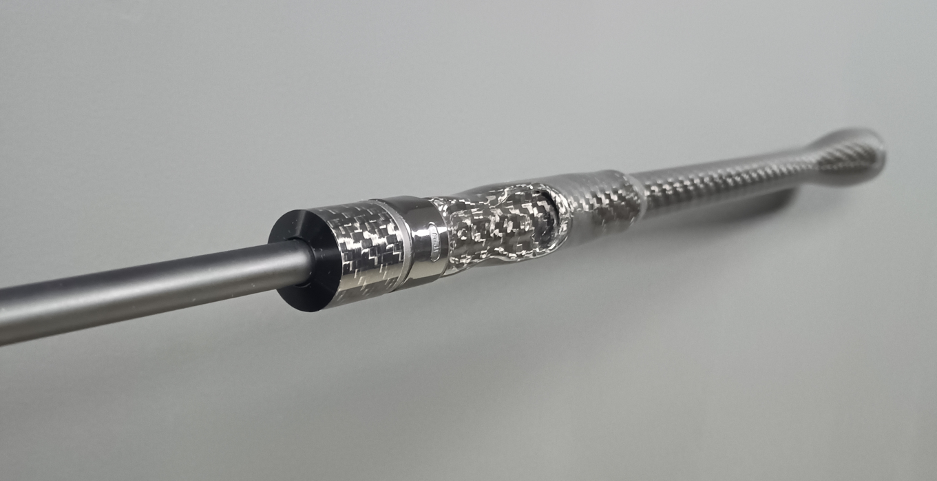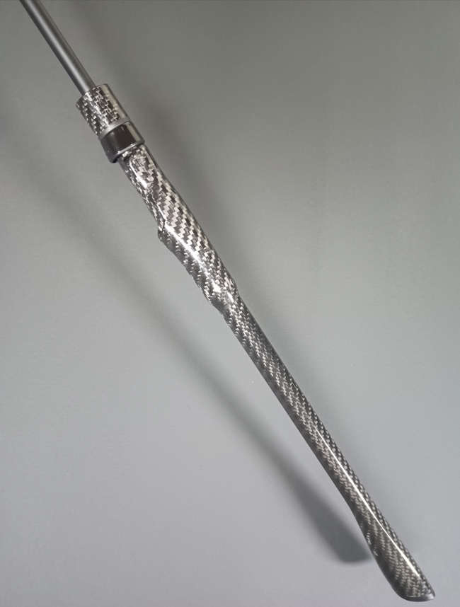 Le montage du blank sur des Carbon Arbors, associé à une poignée en carbone tressé, fait clairement passer cette canne à un niveau supérieur. La résonance obtenue est exceptionnelle.