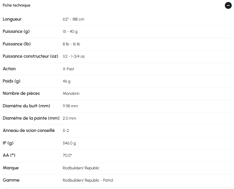 - Poids de la canne : 92 g