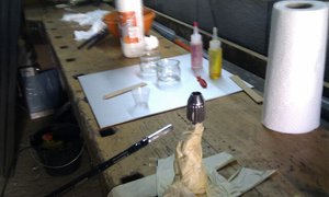 Ensuite la collage de la poignée avec de l'epoxy standard.