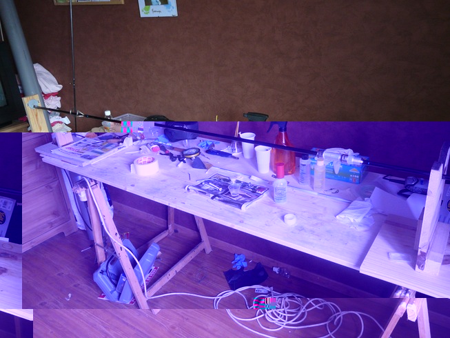 Etape 4 : On vernis le blank, clairement la partie la plus dure car il faut être méticuleux et éviter les poussières... Ceux qui ont suivi mon post dans la section "pour débuter" ont vu mon système de tube PVC pour emprisonner le blank fraîchement vernis.