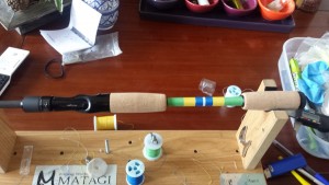 Pour le moment j'ai monté la poignée avec un drapeau brésilien fait en fils à ligature.