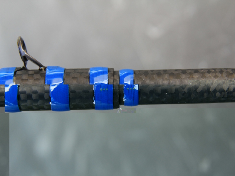 Le carbone est du plus bel effet. On distingue la liaison avec la partie du scion plus souple. Voulant dédier ce blank à la pêche du brochet avec des gros LS, je me suis orienté sur un montage casting spirale. Le constructeur préconise un montage spinning. La spirale lui conviendra donc parfaitement.