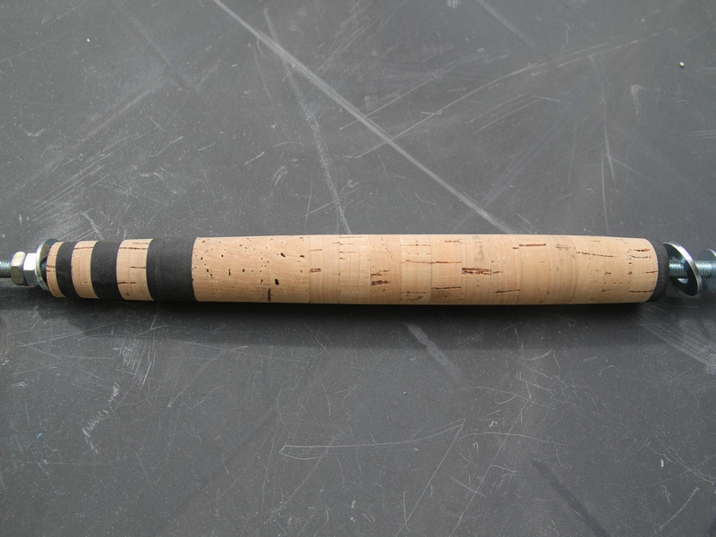 Poignée liège avec quelques incrustations d'EVA. Un coup de Pit Paste pour boucher les trous, un peu de cork sealer.