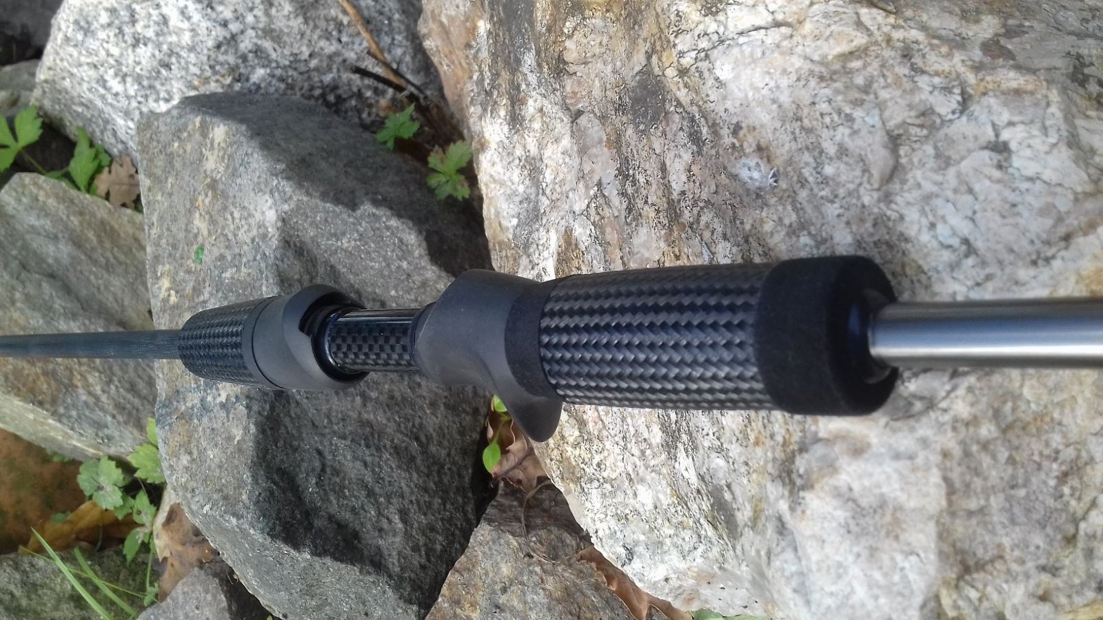 Coté Rear grip on était parti sur un rear grip EVA noir, aprés un montage à blanc l'EVA tout noir faisait "tache" (il existe en version carbone !) donc je me suis servi du CFX carbone que j'ai coupé précédemment et l'ai inséré au rear grip, la finition du rear grip côté butt avec un bout du rear EVA n'était pas visuellement top, j'ai refait 1cm d'EVA noir insérer dans le CFX carbone et mis une bague de finition BWC