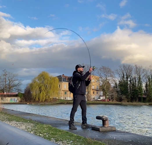 Etant donné que je n'ai pas réussi à insérer la vidéo d'un lancer d'une lame de 12g, je vous ai mit une photo de la courbure de la canne au lancé.