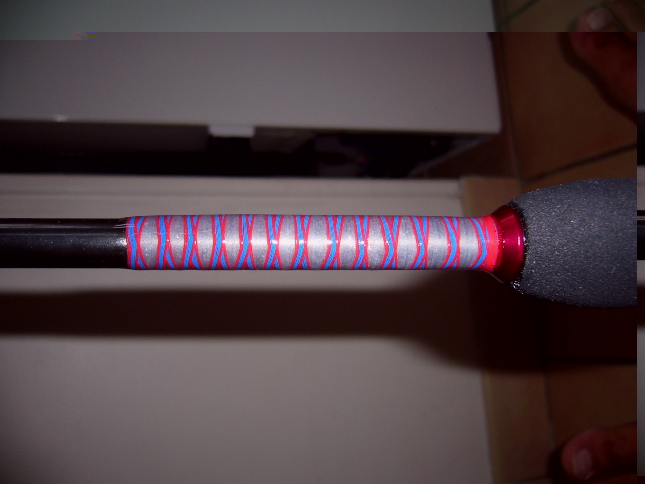 A l'emmanchement est renforcé par de la tresse power pro 30lb :D on est jamais trop prudent, et mon premier wrapping mais je suis fané le fond devait etre blanc mais après le flex coat c devenu gris :cry: